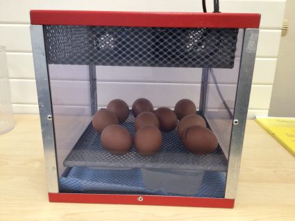 Reception took delivery of a very exciting package today – chicken eggs!